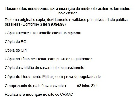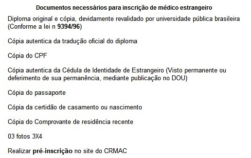 Inscrição médicos extrangeiros